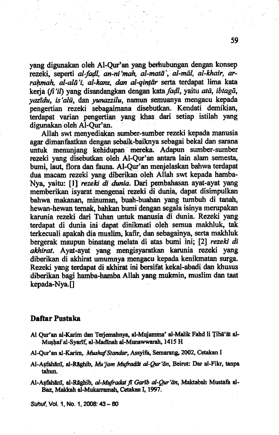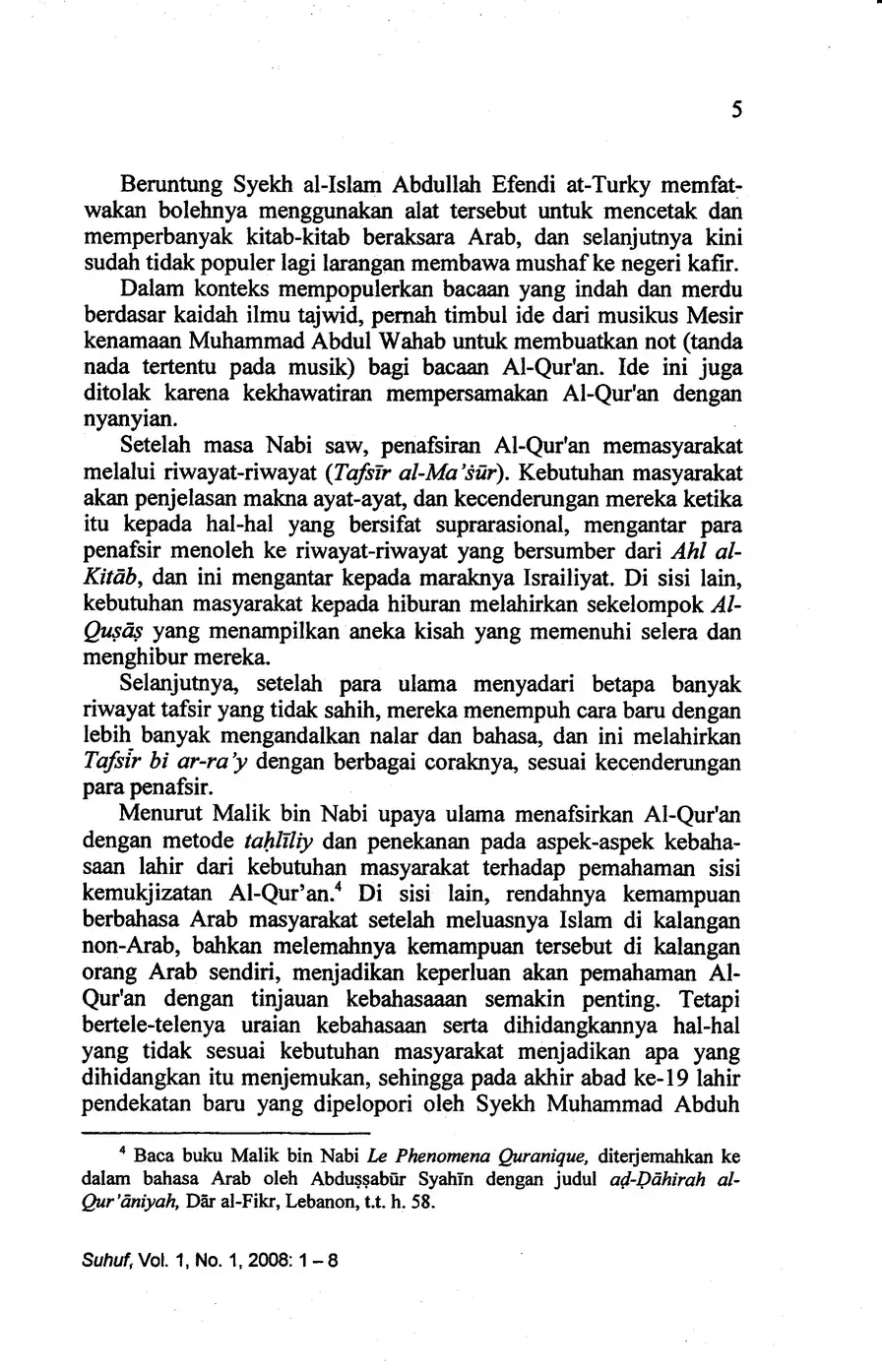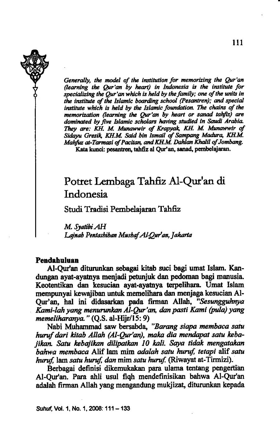 Suhuf Jurnal Kajian Al-Qur'an dan Kebudayaan. Vol. 1 - No. 1 - 2008