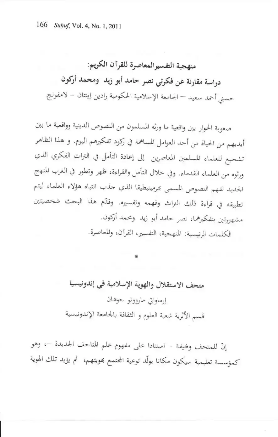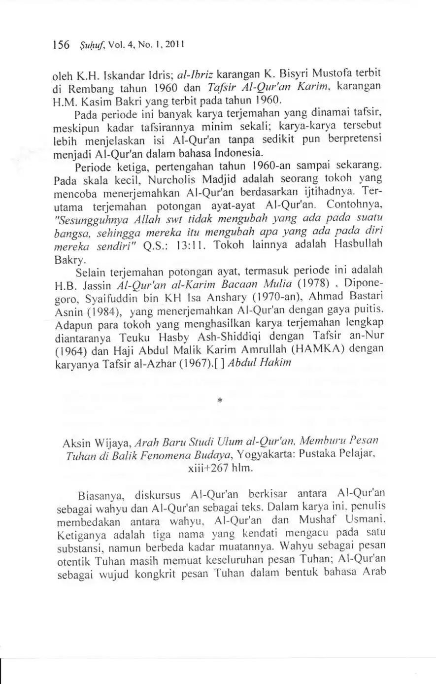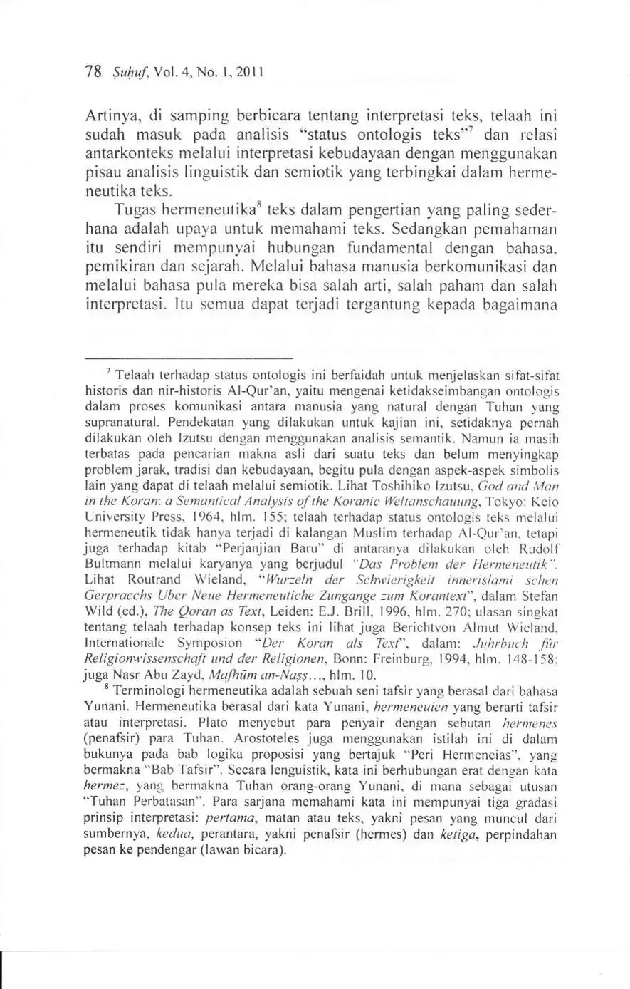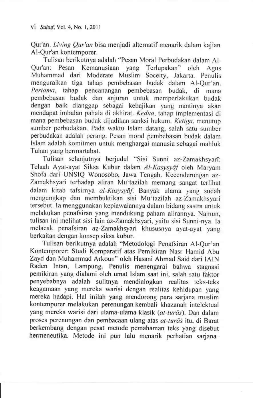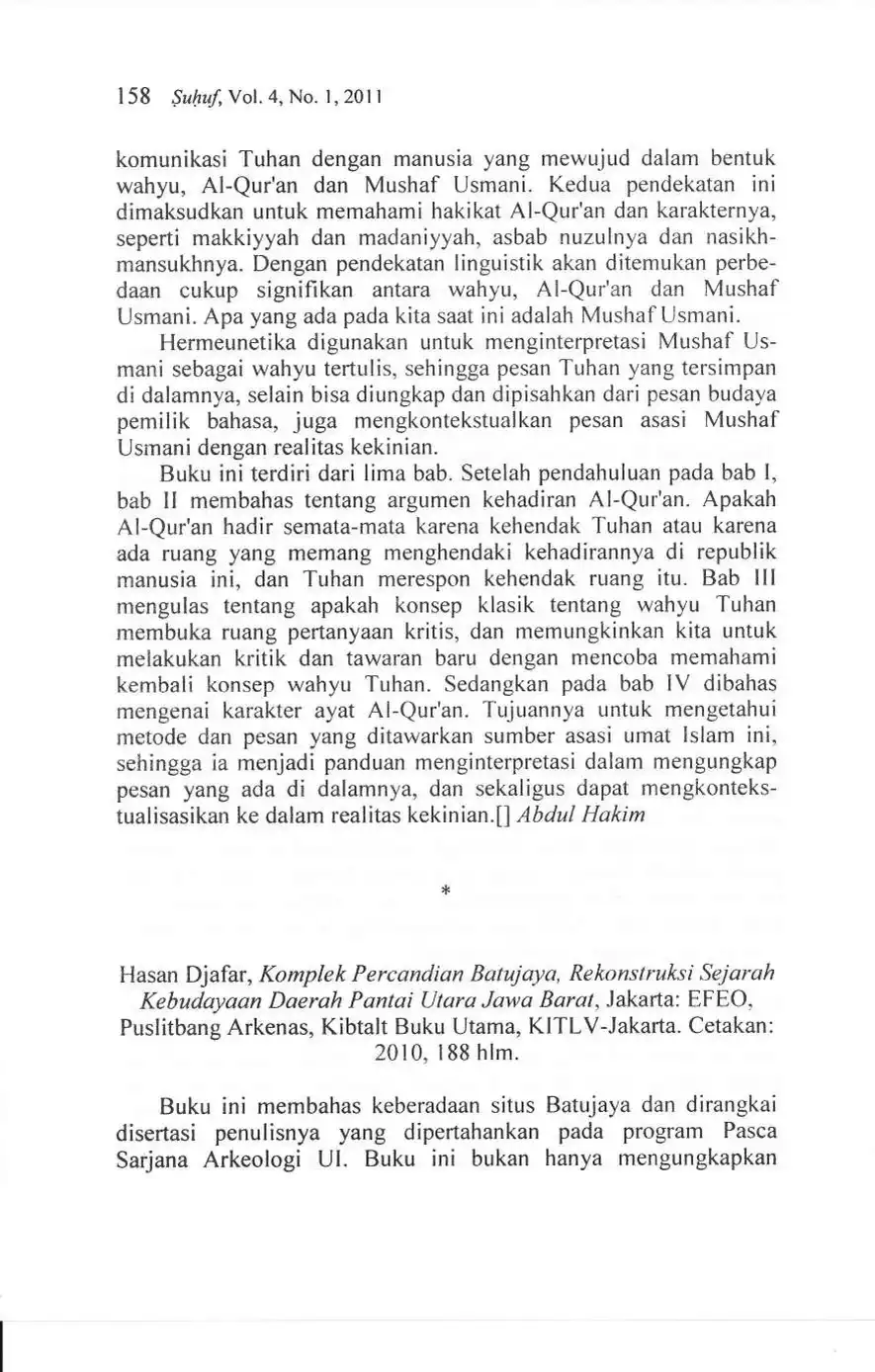 Suhuf Jurnal Kajian Al-Qur'an dan Kebudayaan. Vol. 4 - No. 1 - 2011