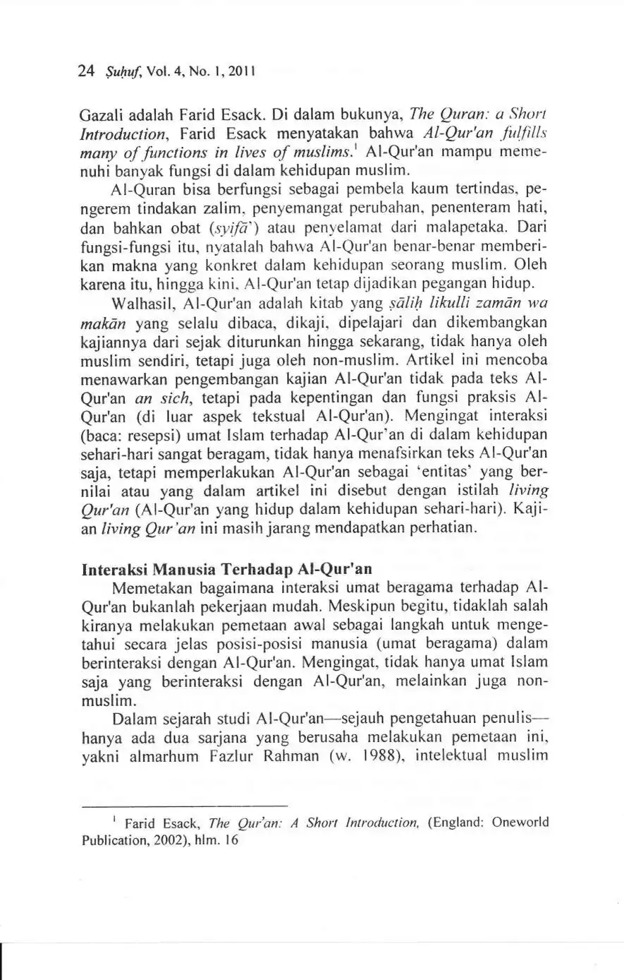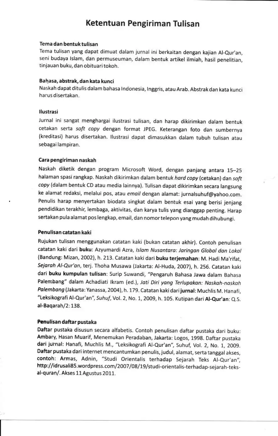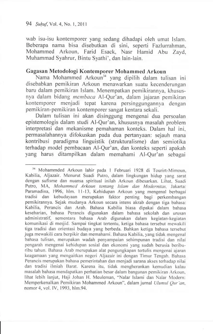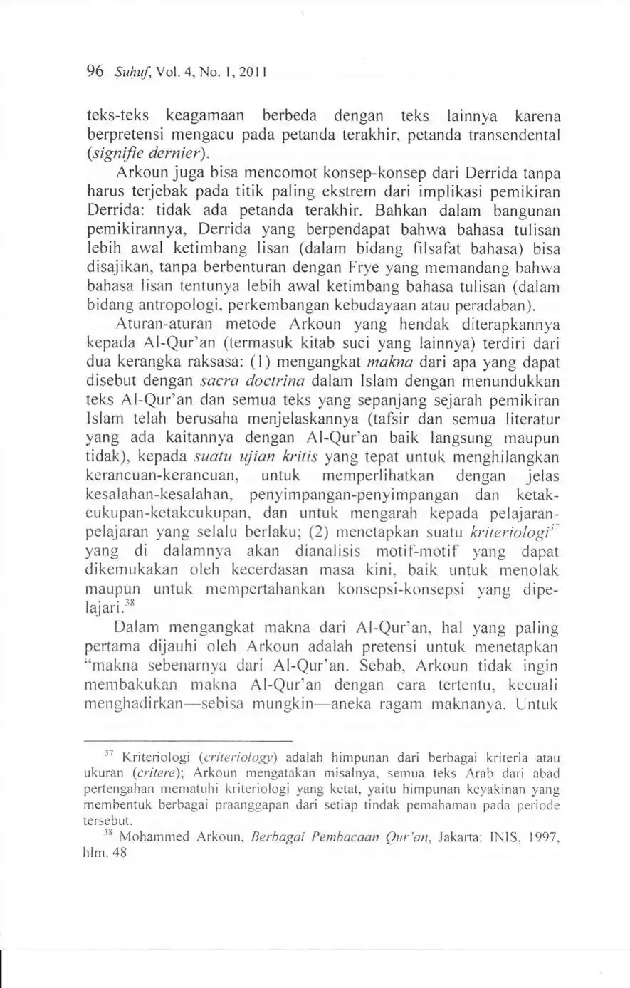 Suhuf Jurnal Kajian Al-Qur'an dan Kebudayaan. Vol. 4 - No. 1 - 2011