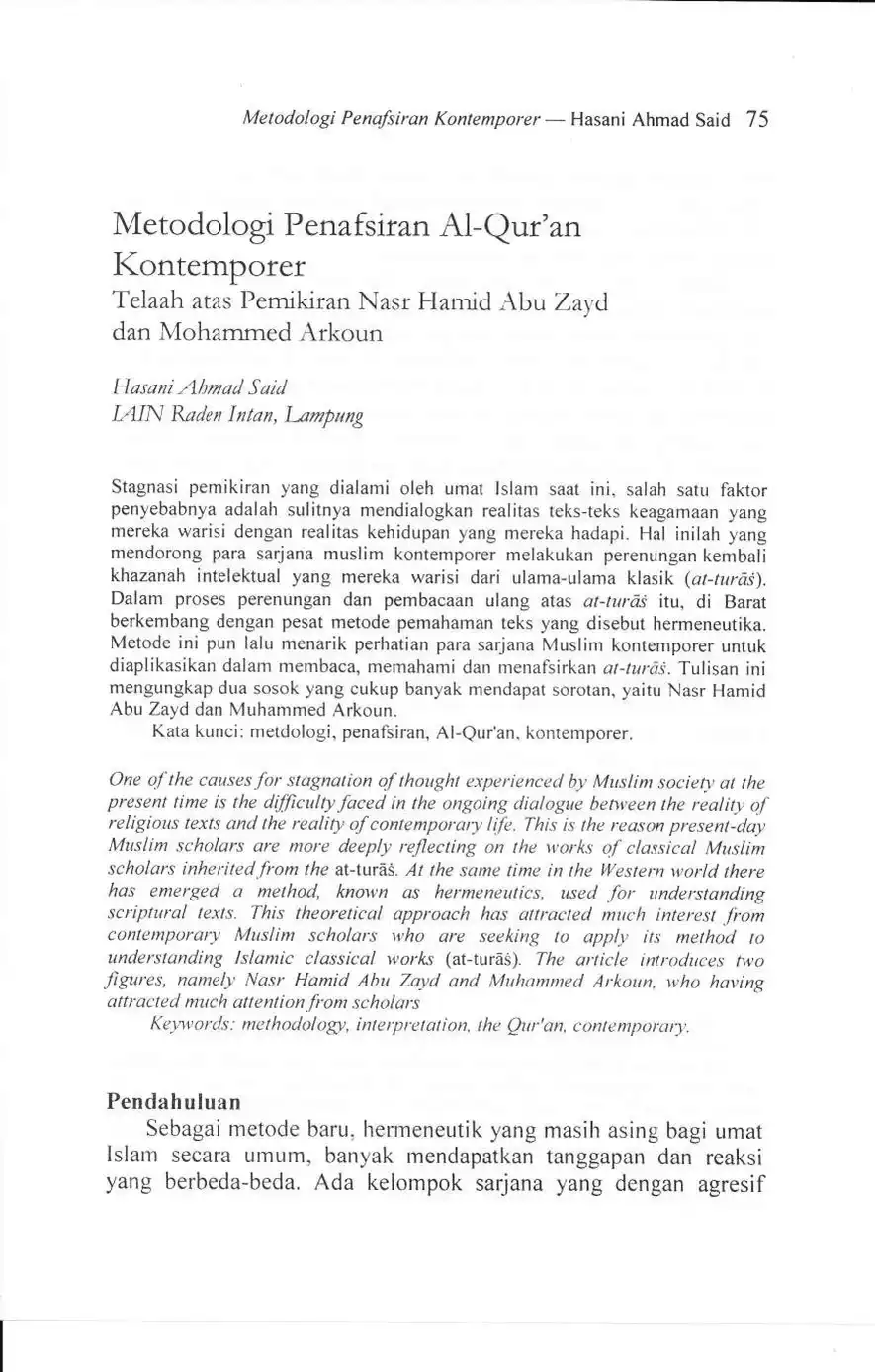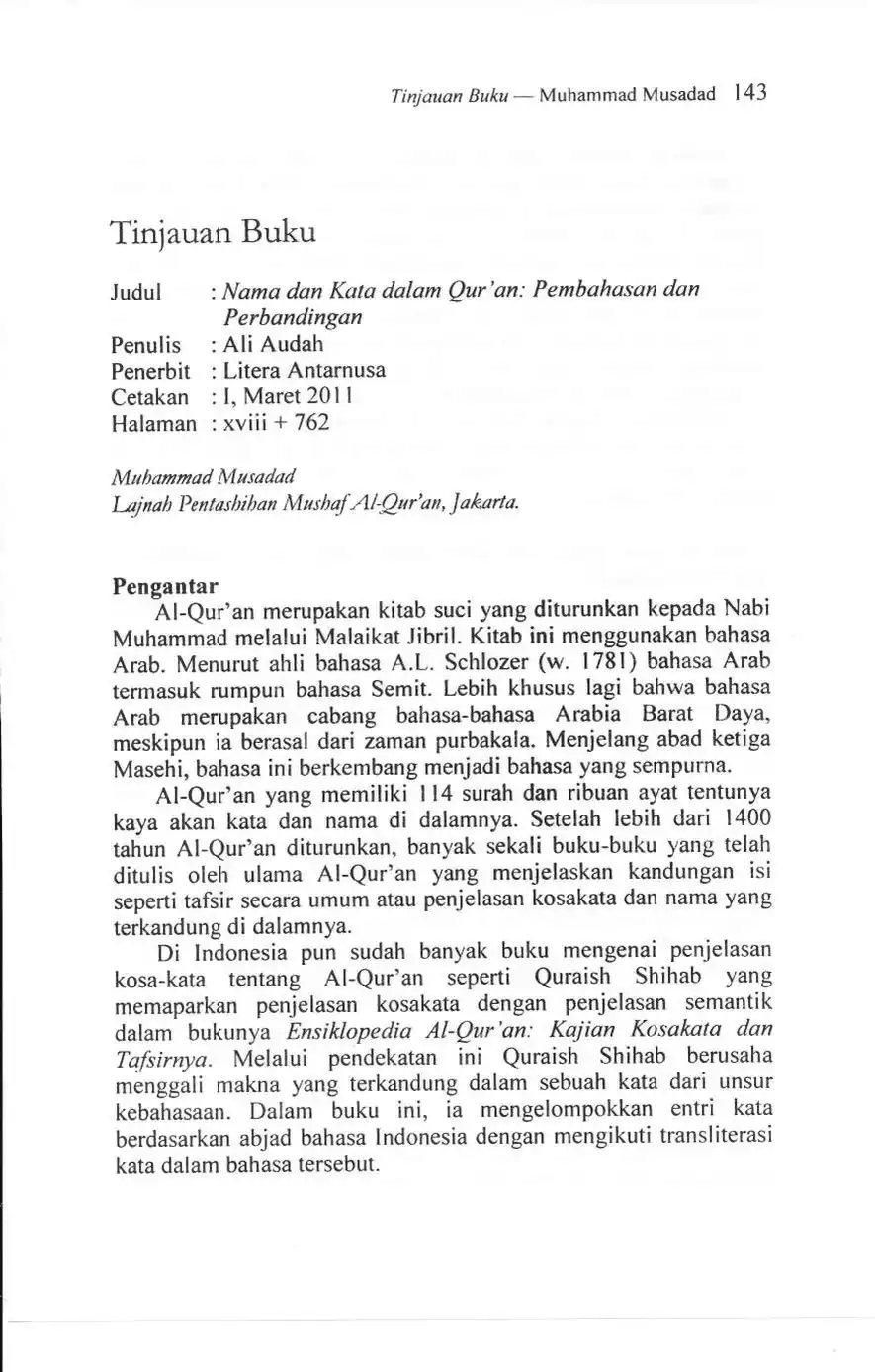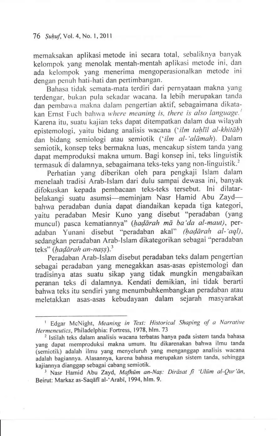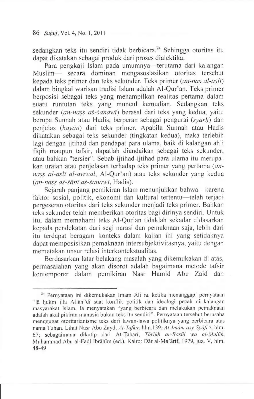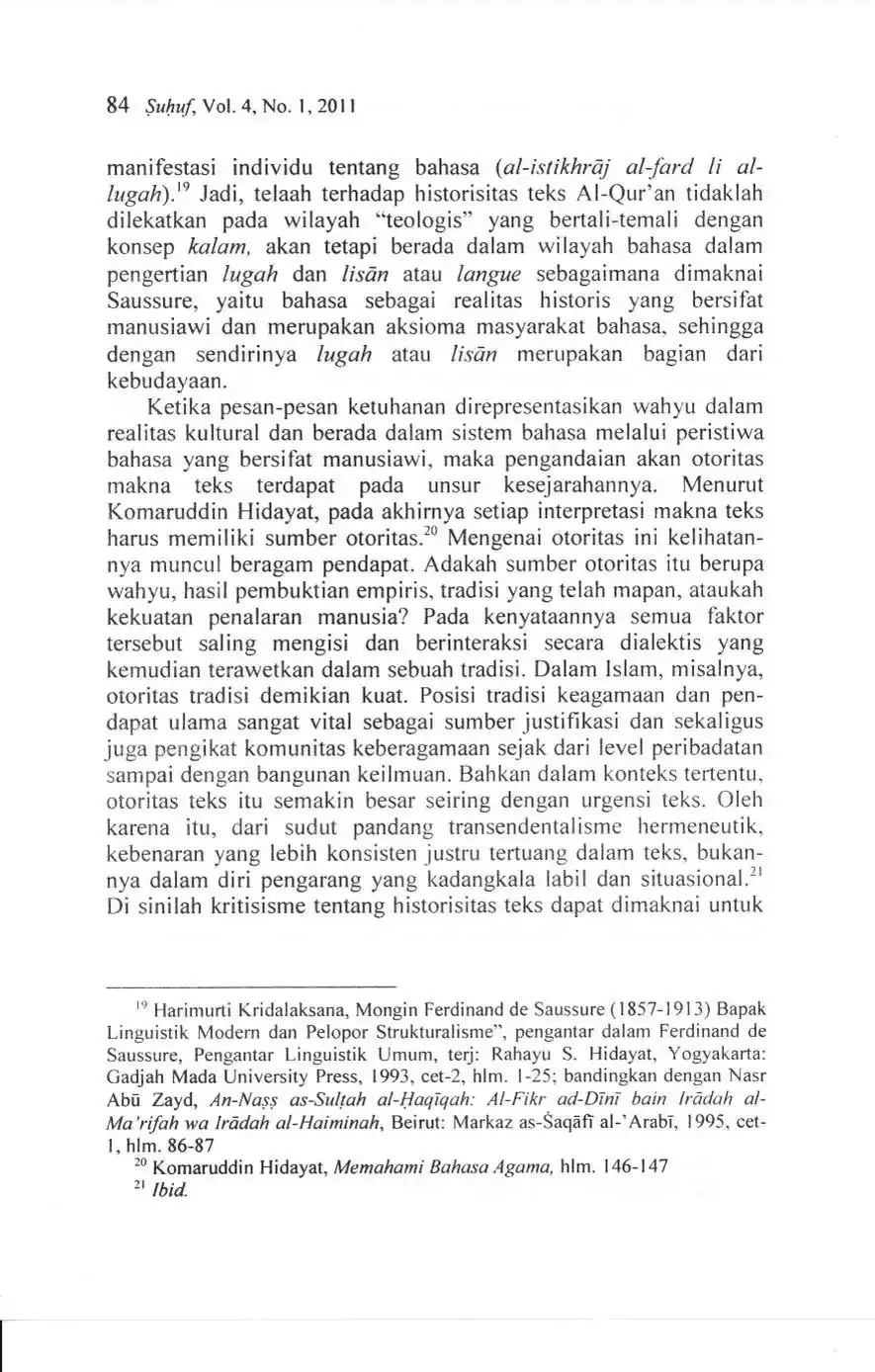 Suhuf Jurnal Kajian Al-Qur'an dan Kebudayaan. Vol. 4 - No. 1 - 2011