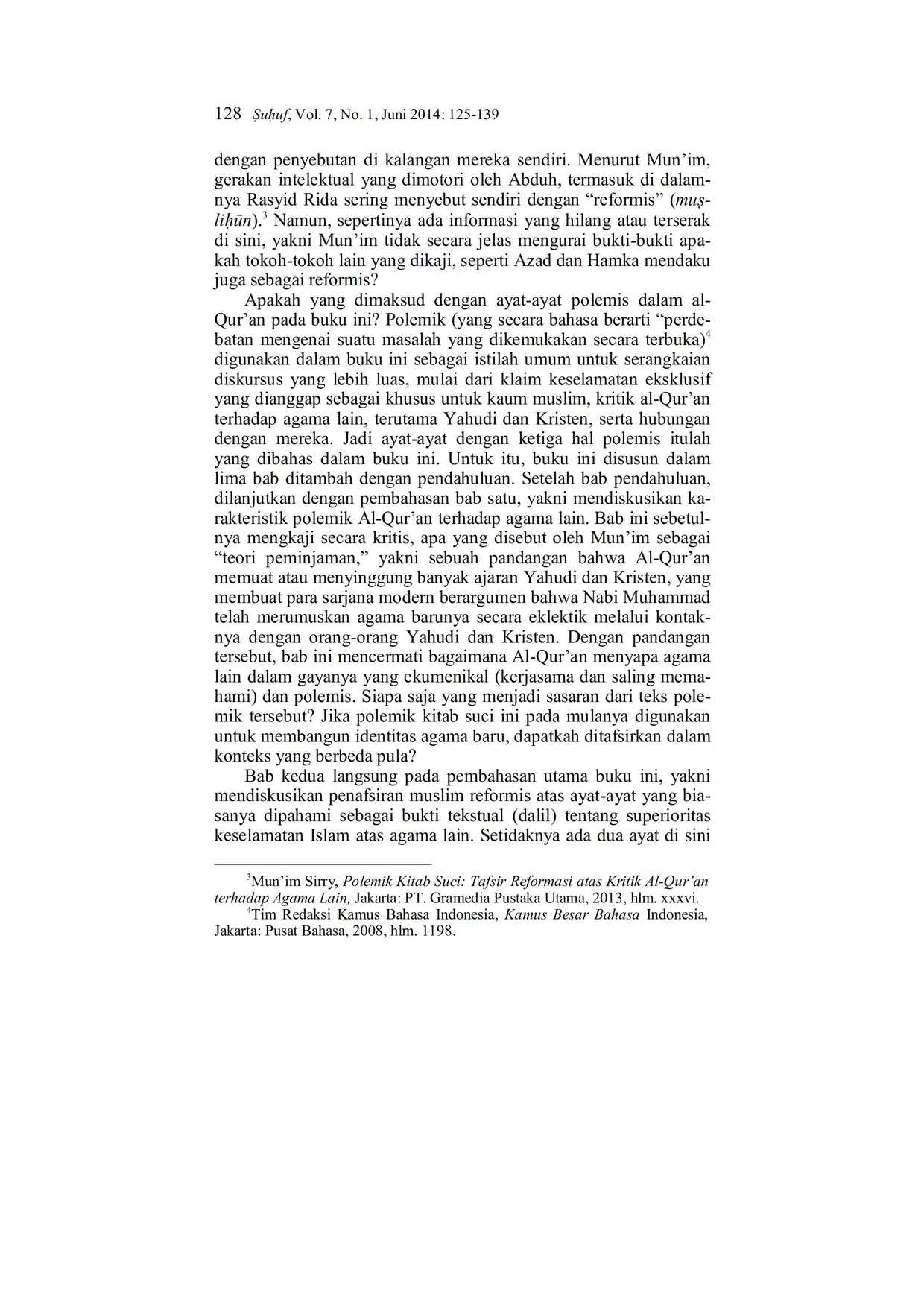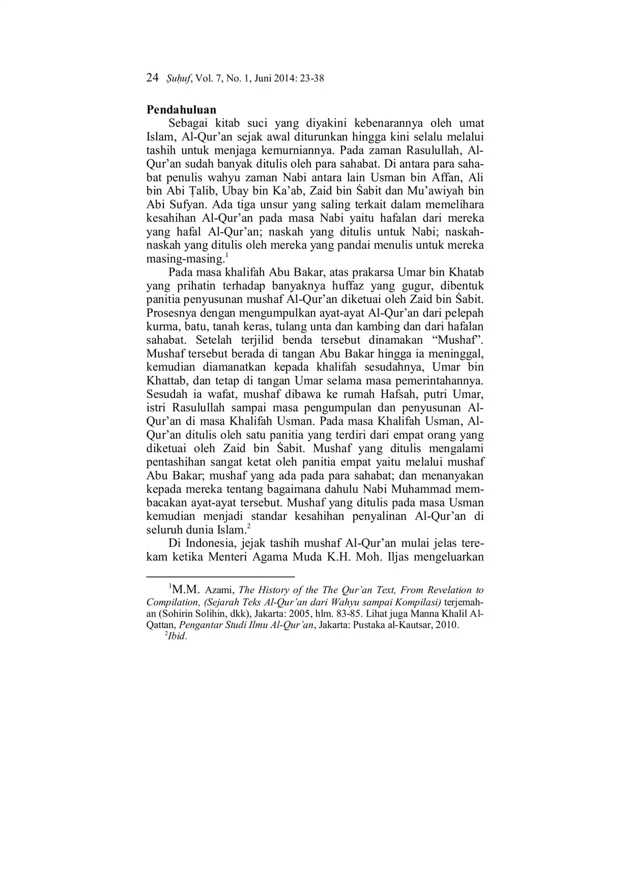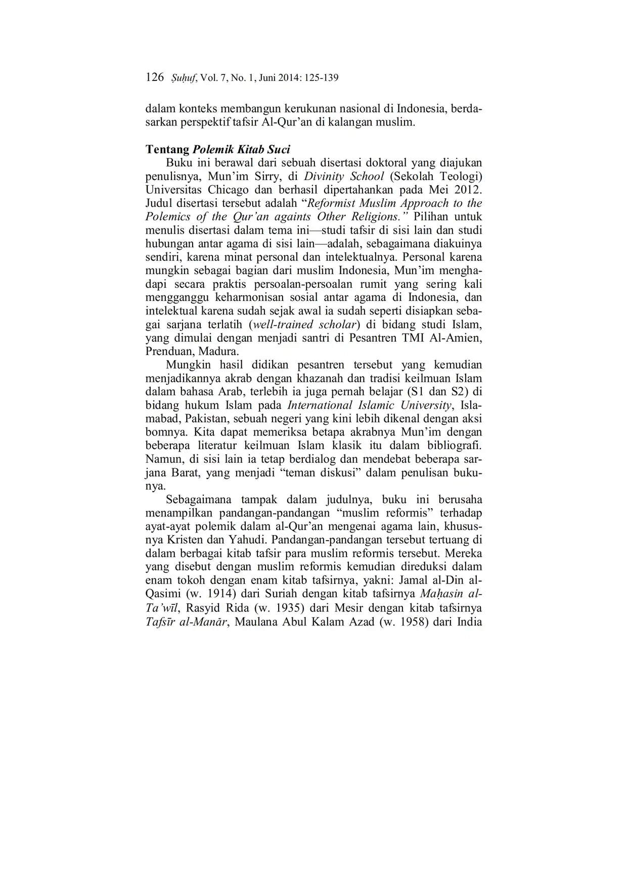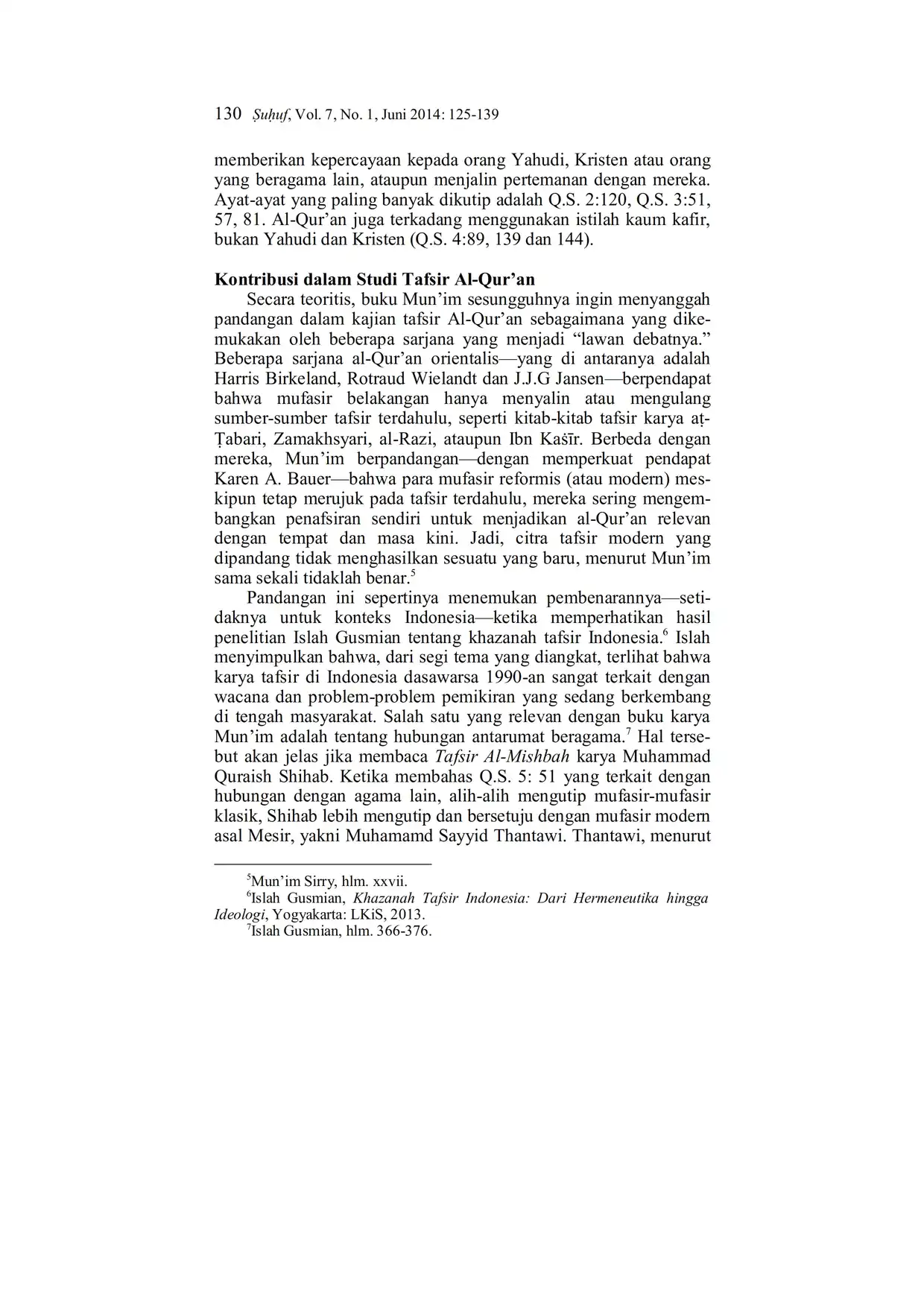 Suhuf Jurnal Kajian Al-Qur'an dan Kebudayaan. Vol. 7 - No. 1 - 2014