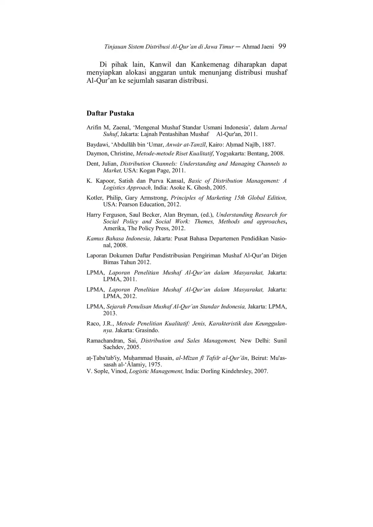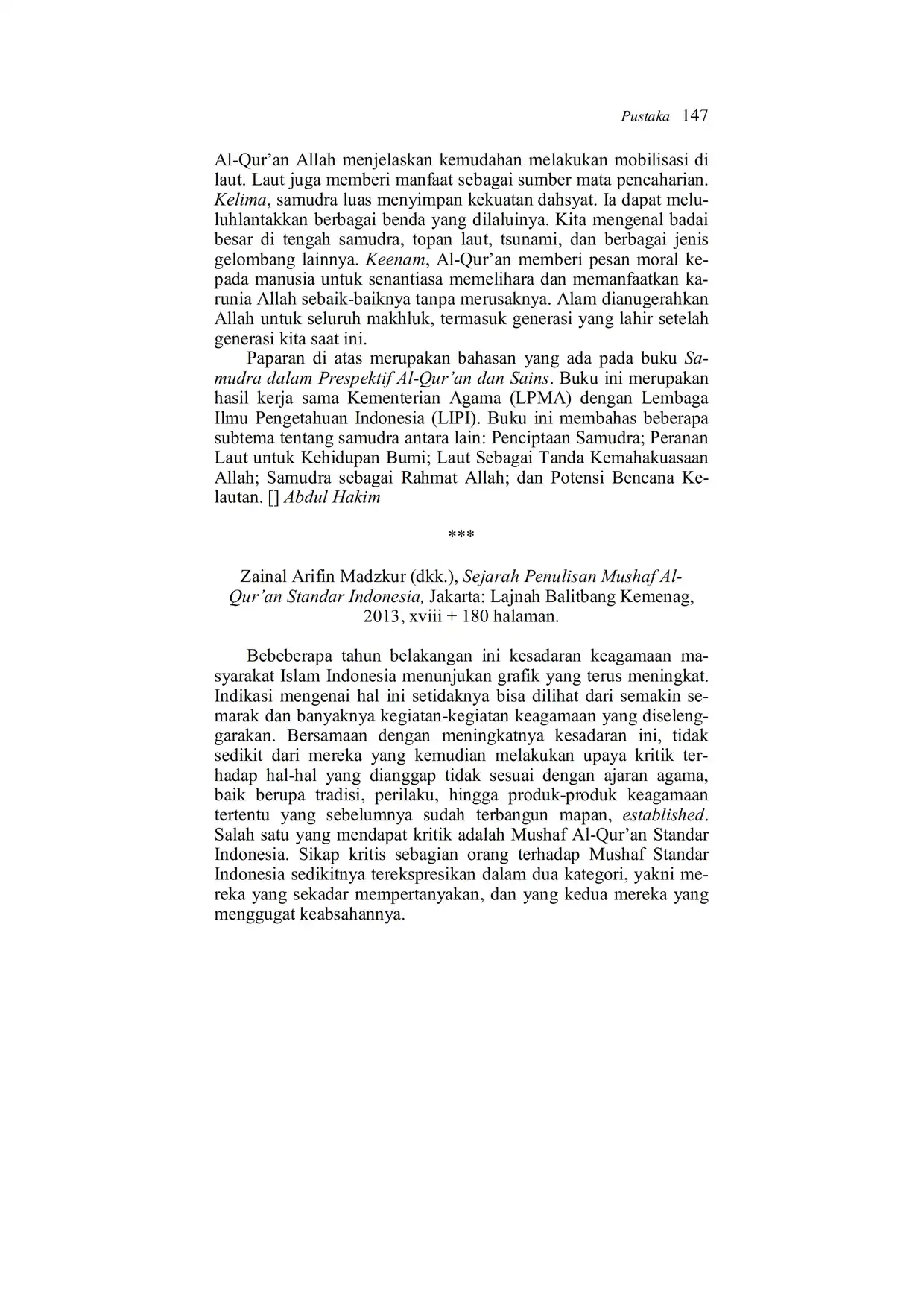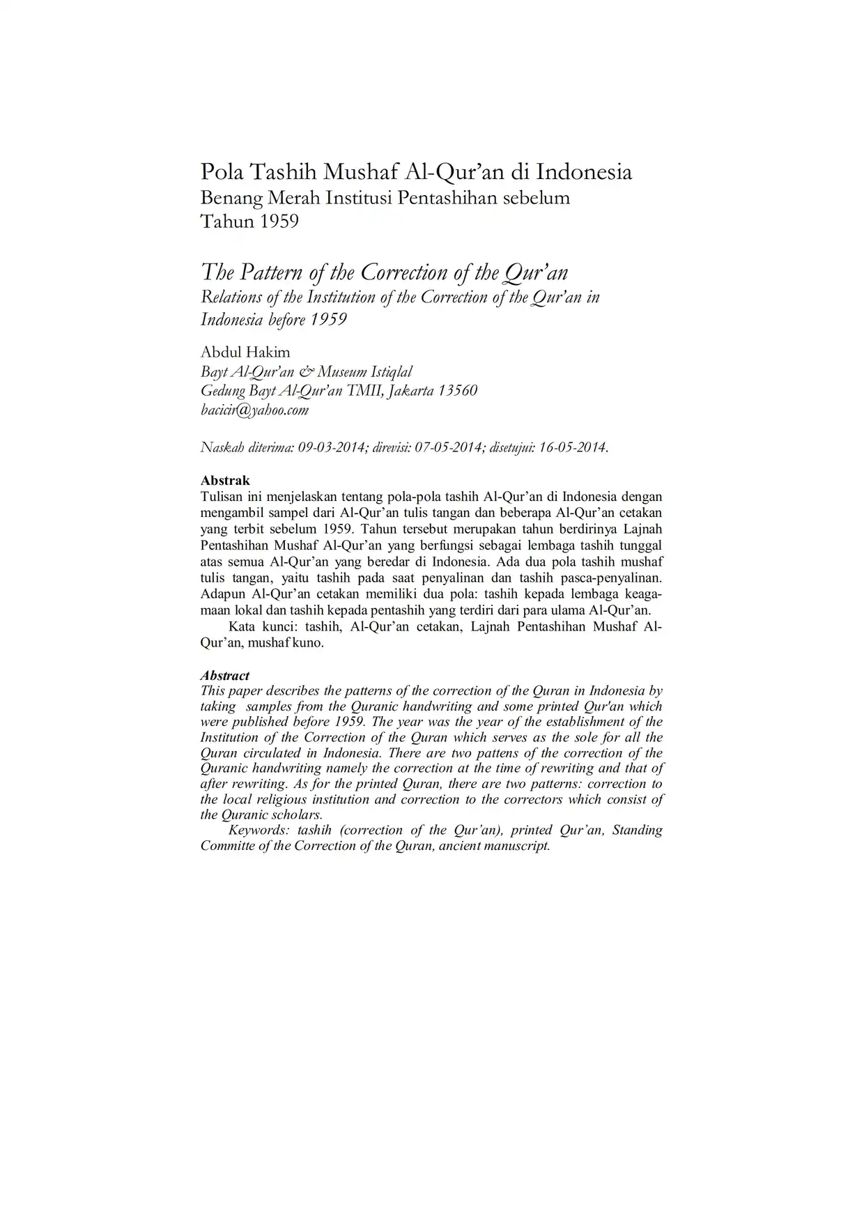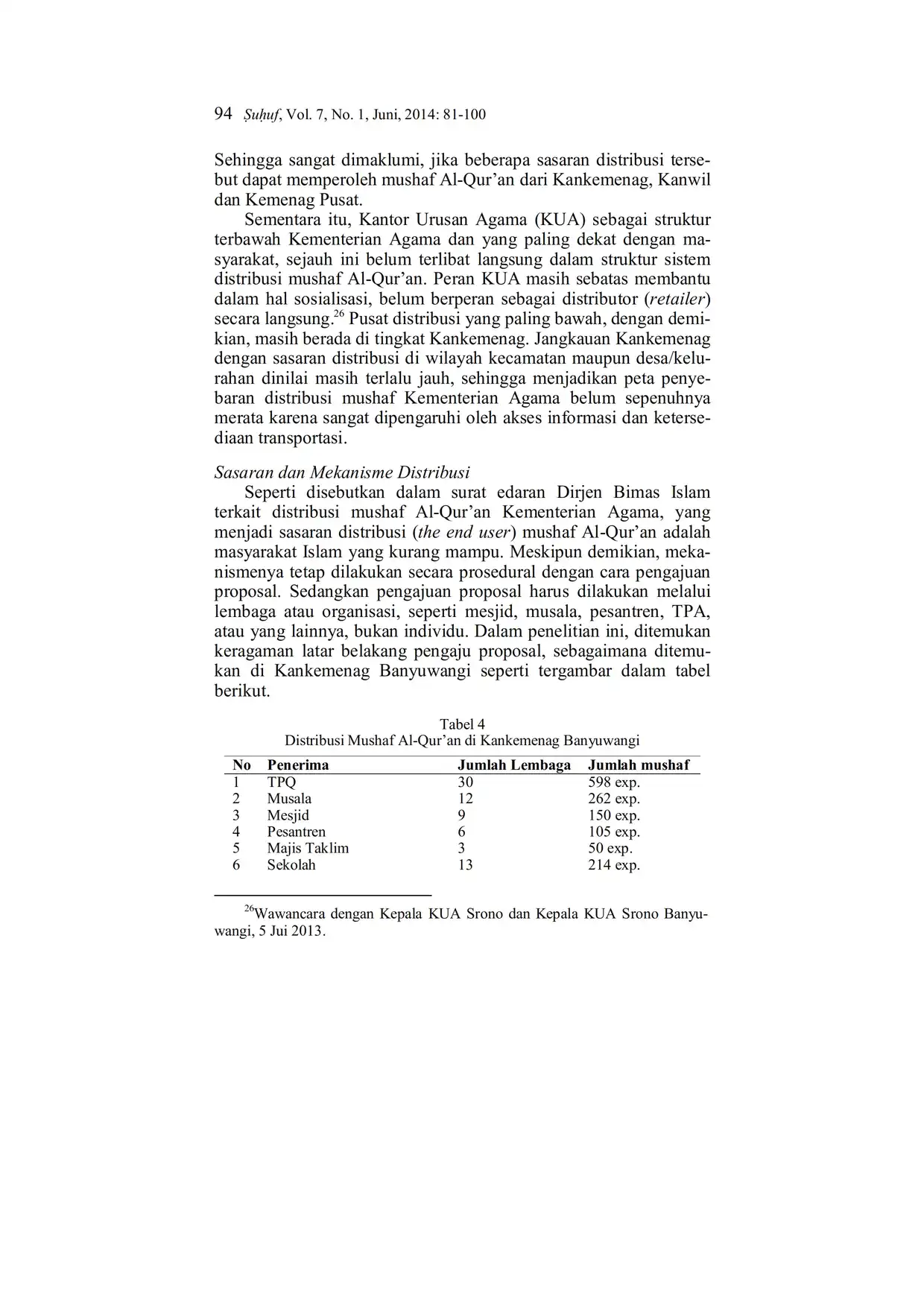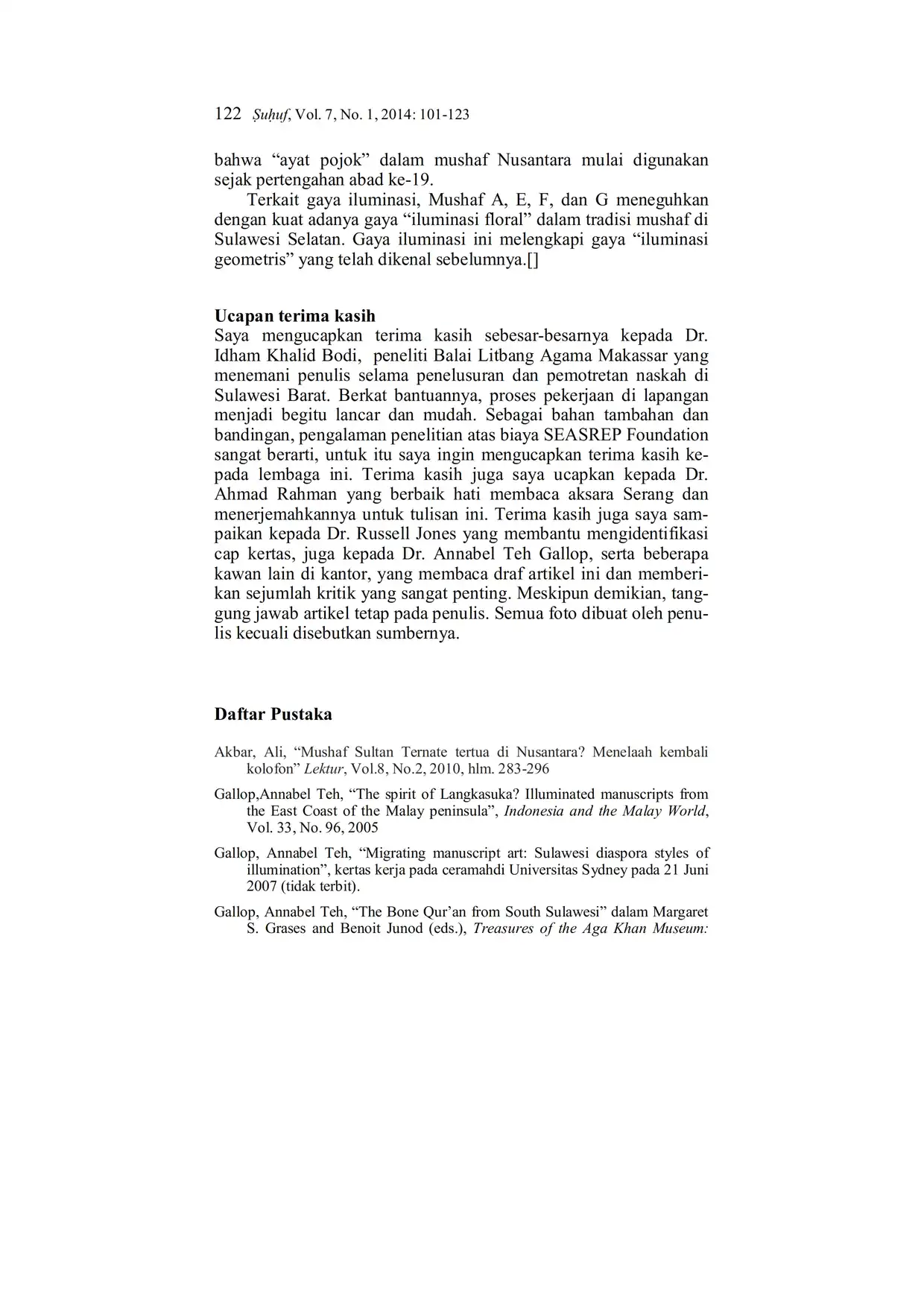 Suhuf Jurnal Kajian Al-Qur'an dan Kebudayaan. Vol. 7 - No. 1 - 2014