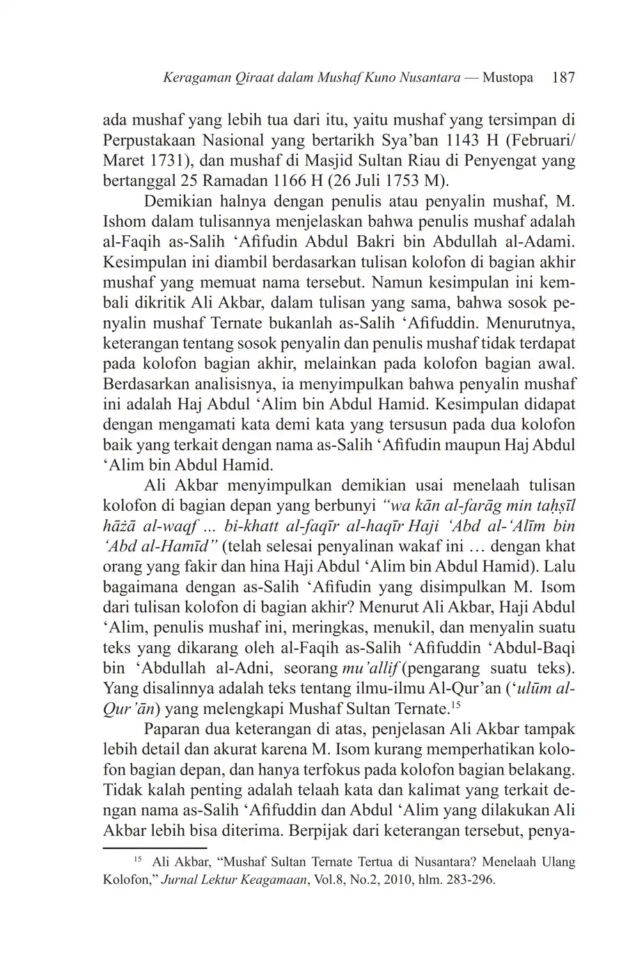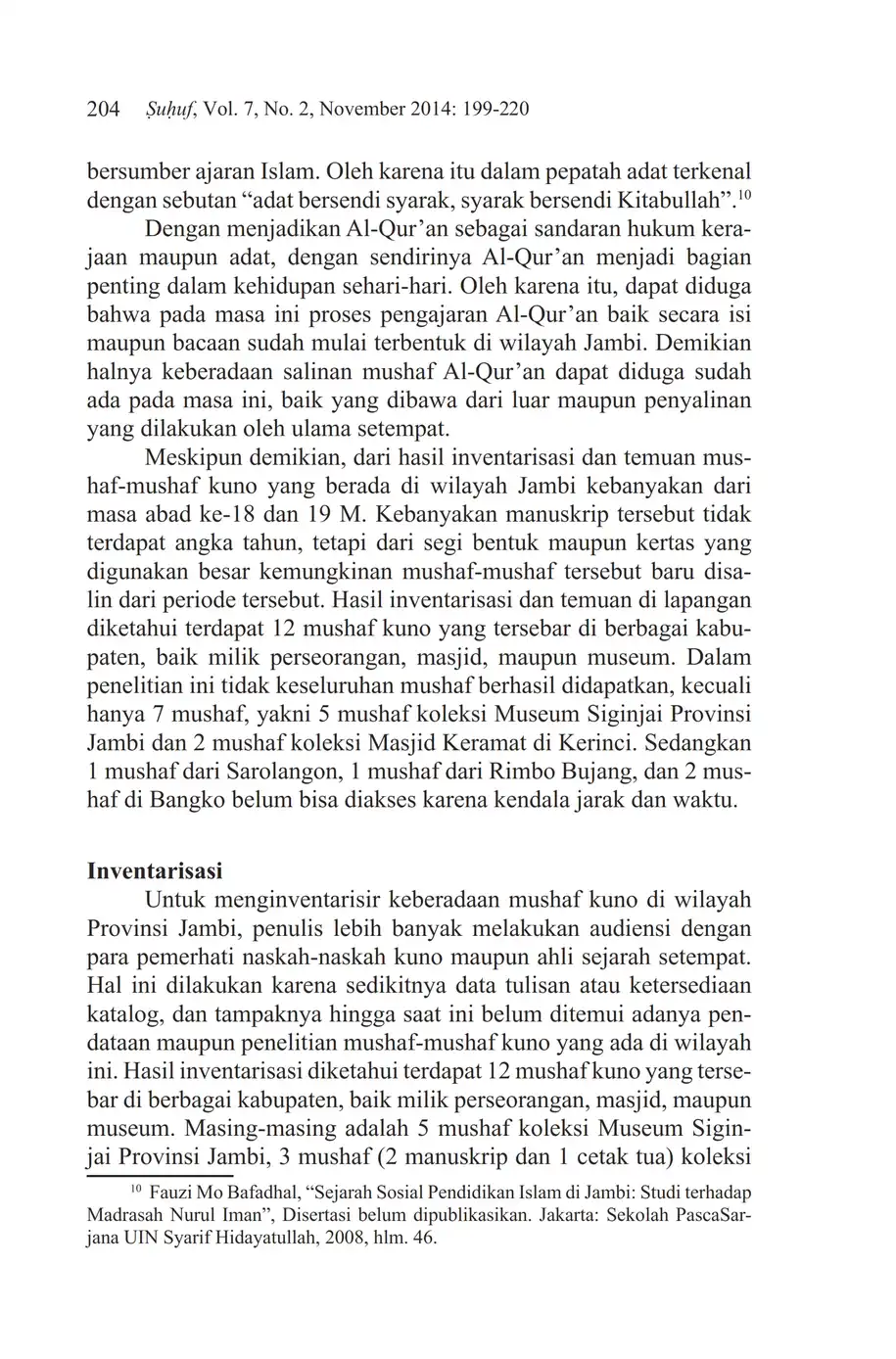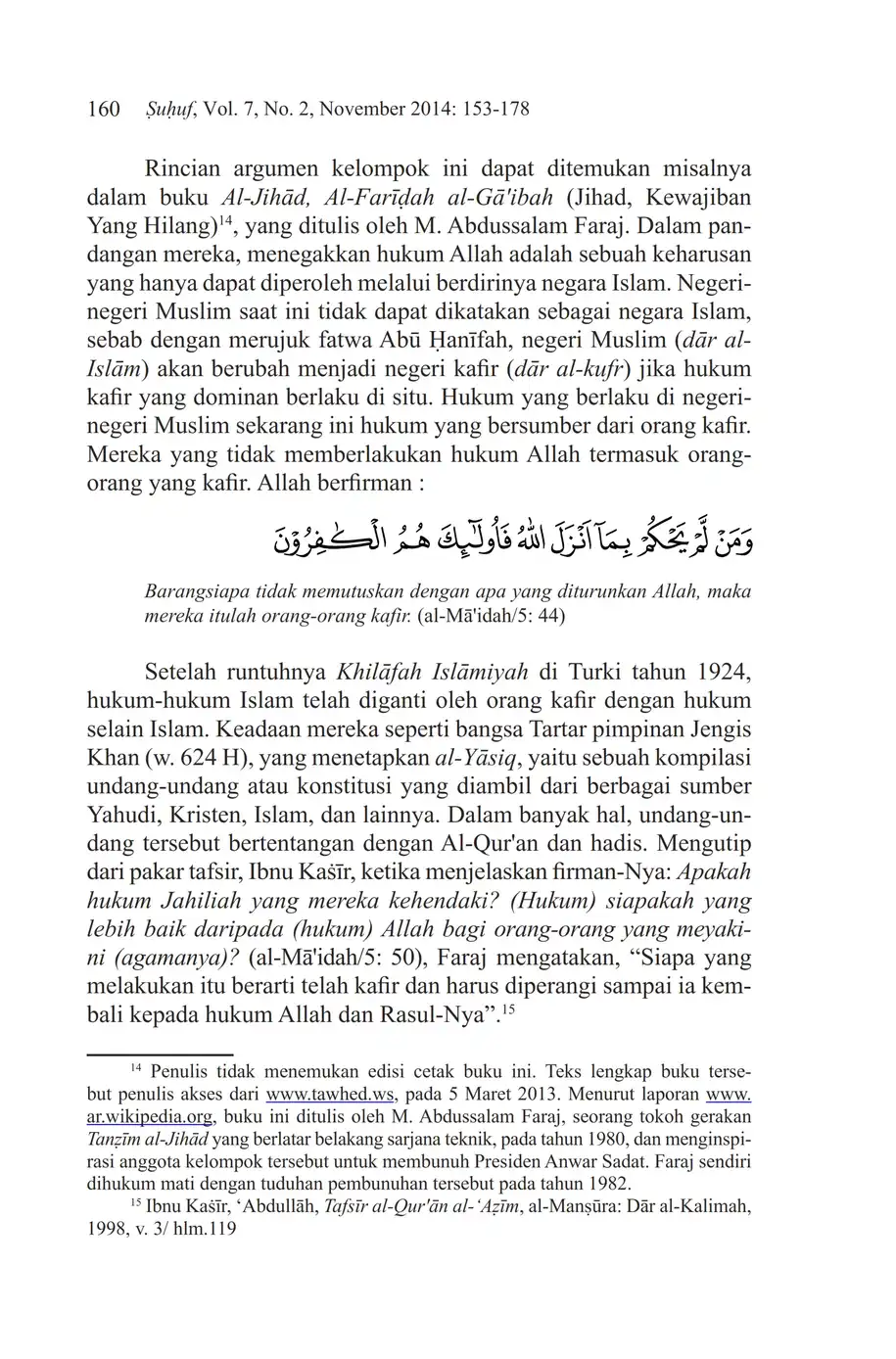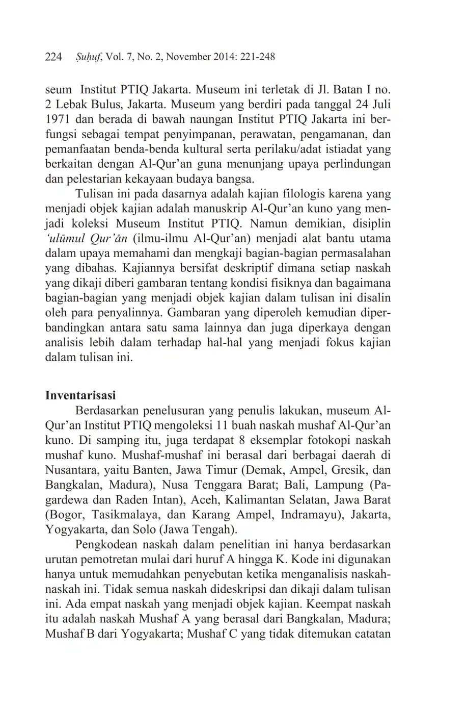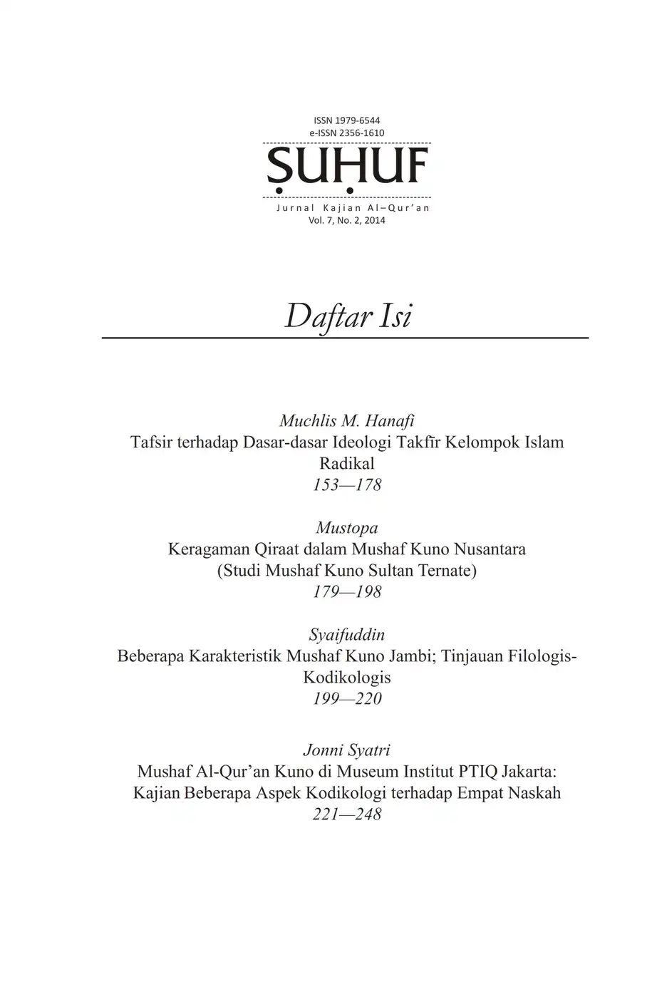 Suhuf Jurnal Kajian Al-Qur'an dan Kebudayaan. Vol. 7 - No. 2 - 2014