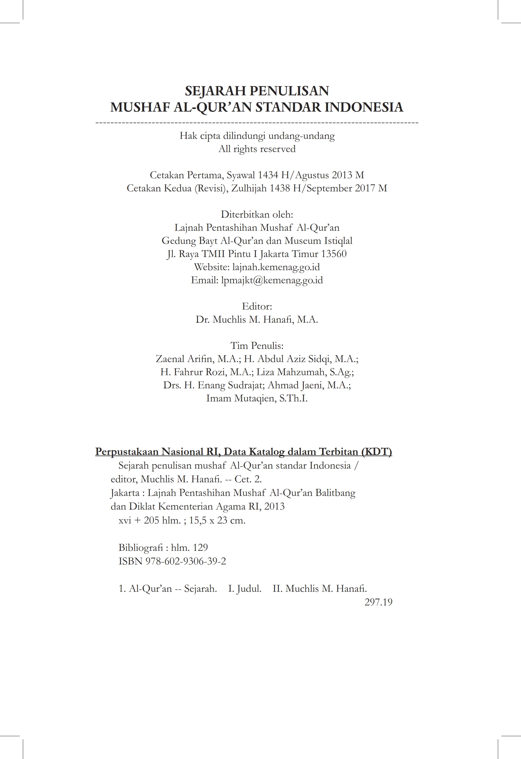 Sejarah Penulisan Mushaf Al-Qur'an Standar Indonesia
